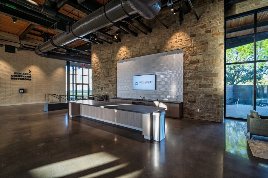 Talley Riggins is providing construction management services both demo and new construction on First McKinney’s campus. New construction included a new Community Lobby connecting the existing adjacent buildings, with a new Youth Building to the south. The new community lobby will include new glazed entries, proposed east clerestory, and exposed structural wood deck and steel framing. It will also include an interior and exterior coffee bar, new restrooms and connection to adjacent exterior landscape areas. The new Youth Building will include exposed structure, exterior and interior glazing systems with two multipurpose spaces and connection to community lawn space. A new accessible “Senior” Entry adjacent to the west drop off will be constructed after the removal of the existing Youth Building. All construction will take place while keeping the campus fully operational.